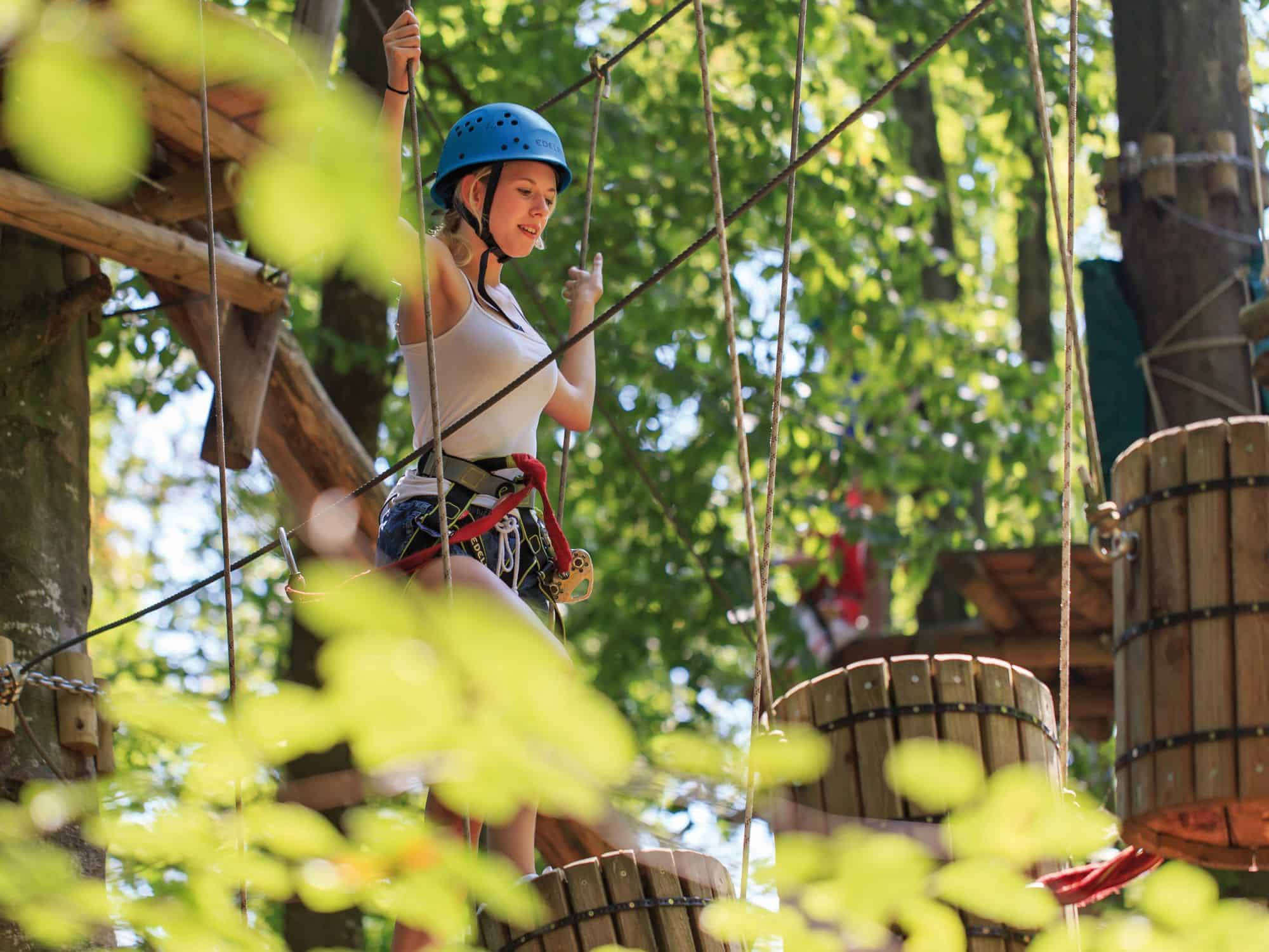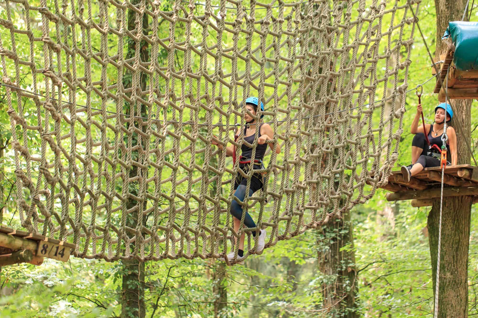 Mit 7 Parcours in 4 bis 9 Metern Höhe behalten Eltern ihre Kinder gut im Blick, während diese erste Klettererfahrungen sammeln.